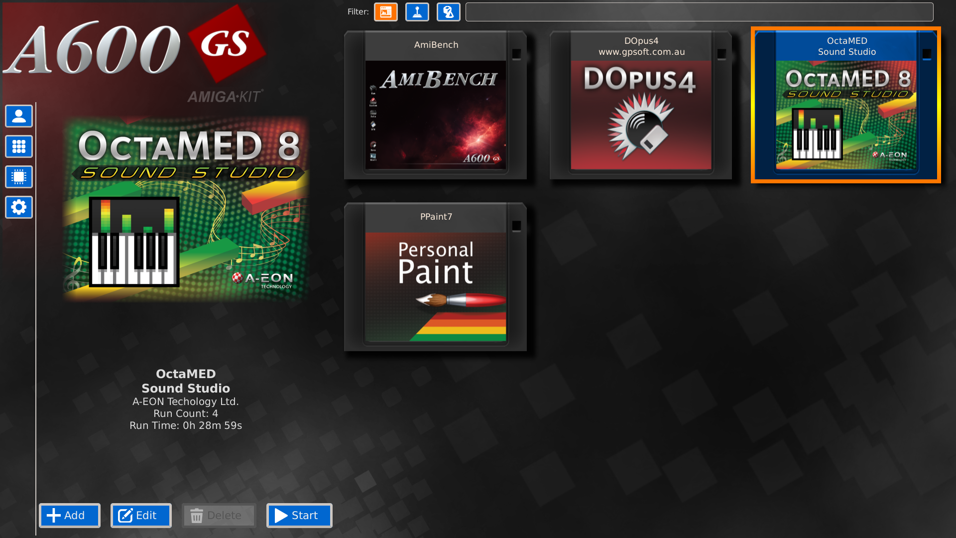 Install and run your collection of AGA, ECS or OCS games and scene demos¹. Use the new 2024 updated versions of Final Writer, OctaMED and Personal Paint which are pre-installed, ready-to-run.