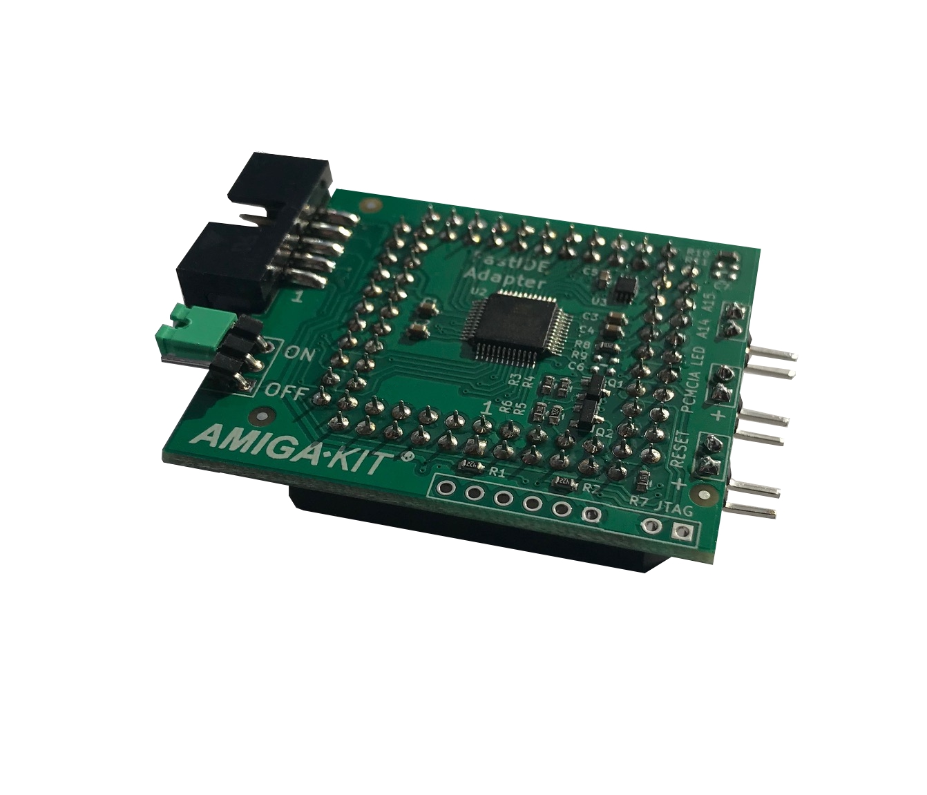 This adapter simply plugs onto the top of the Gayle chip and connects to the buffered IDE interface with the supplied ribbon cable.