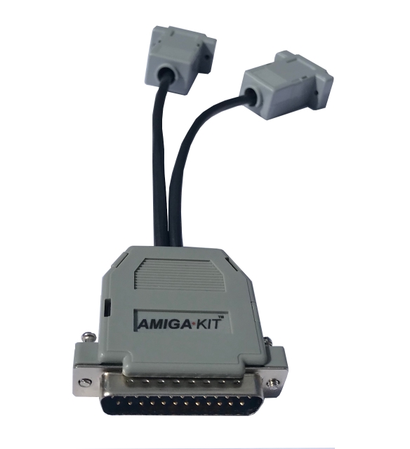 New multiplayer adapter cable which allows two additional joysticks to be connected to the Amiga's parallel port. This enables up to four joysticks to be connected and up to four players to be playing the same game at any one time.